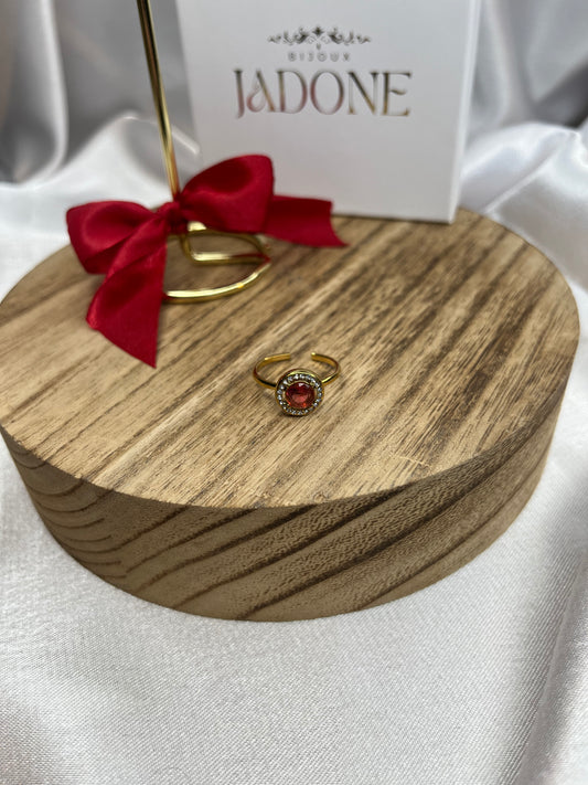 RUBi l Bague accordéon ajustable dorée et zircon rouge
