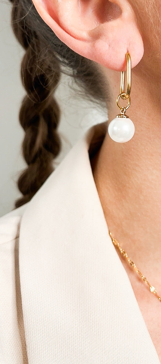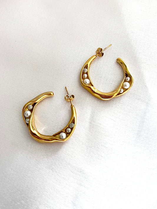 POEMA l Boucles d'oreilles créoles dorées et perles blanche