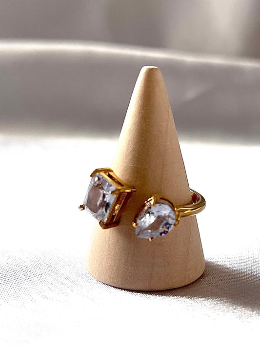 AZUR l Bague dorée en acier inoxydable et pierre serti