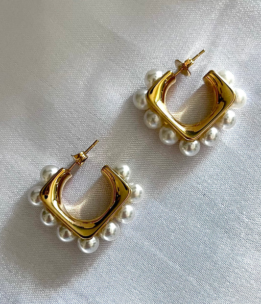 ENOLA l Boucles d'oreilles carré dorées et perles blanche