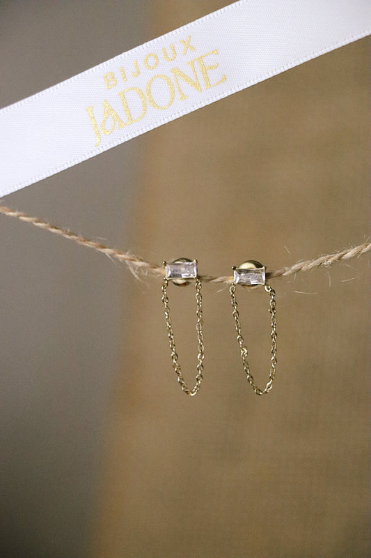 PRIME l Boucles d'oreilles dorées ou argentées avec chaînette