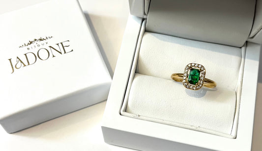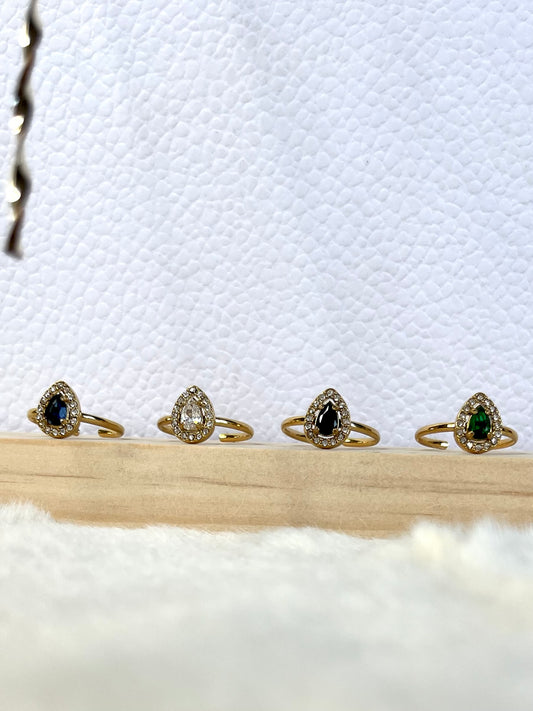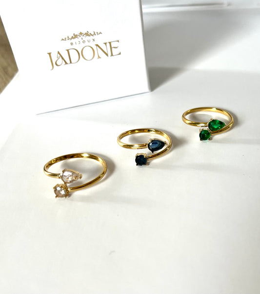 ALEXANDRA l Bague dorée et zircon bleu vert ou blanc