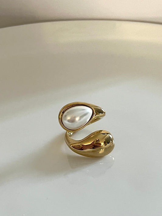 Morgane l Bague ajustable doré et sa pierre marron ou blanche