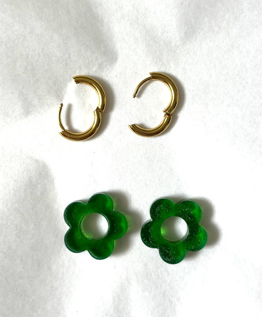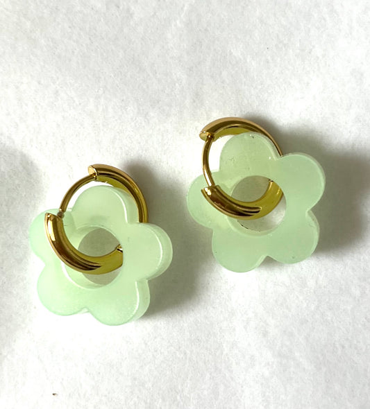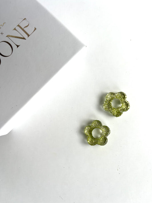Pampilles l fleur paillettes vertes avec ou sans créole