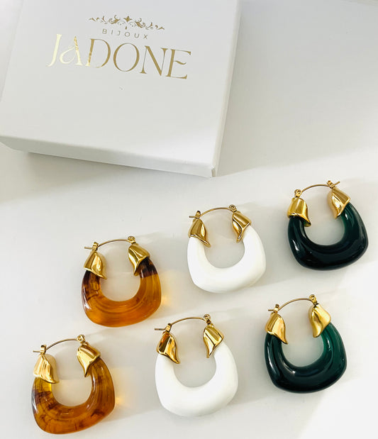 Soraya l boucles d'oreilles dorées et ses pierres verte blanche bleu ou noire