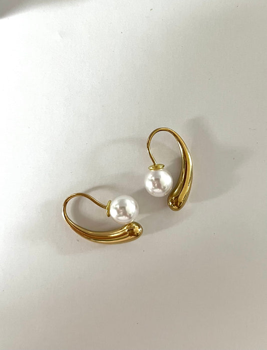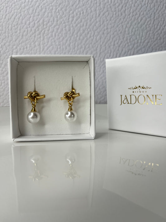 Maud l Boucles d'oreilles noeud doré et perle blanche
