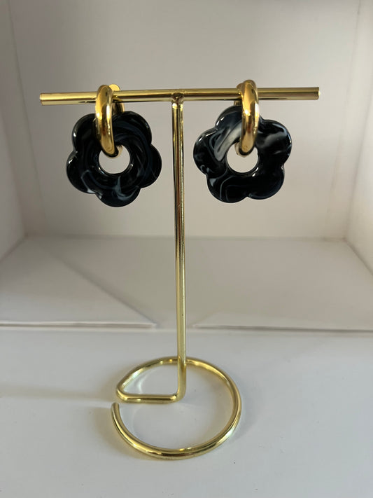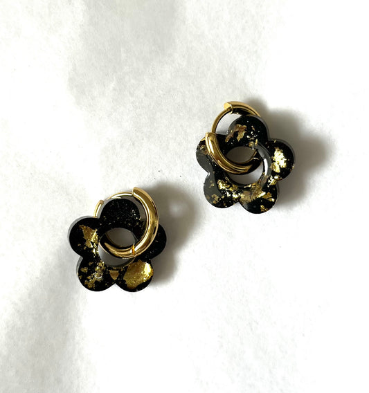 Pampille l créole dorées et sa fleur noire et feuille dorées