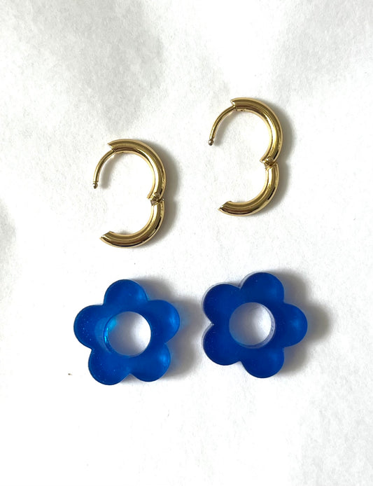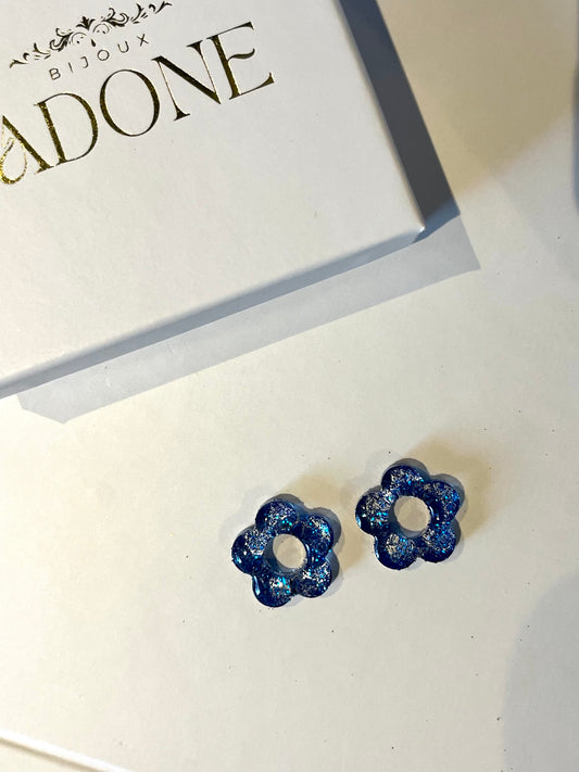 Pampilles l fleur pailettes bleu avec ou sans créole