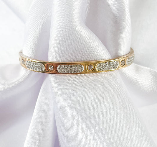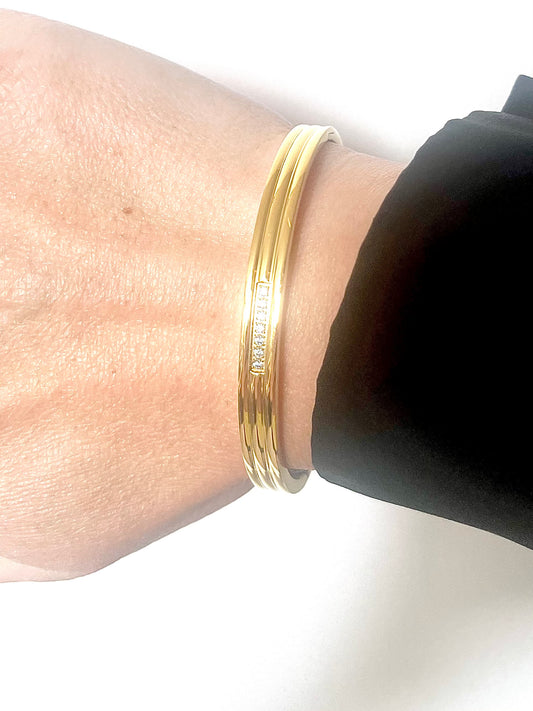 CORÉ l Bracelet jonc doré en acier inoxydable et strass