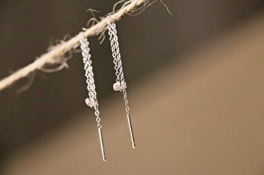 MINIA l Boucles d'oreilles chaîne longue argentées