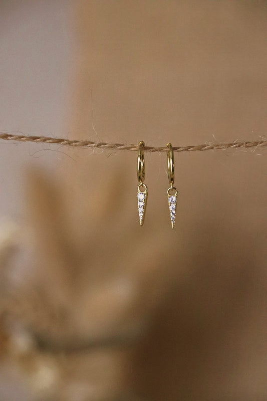 CELINE l Boucles d'oreilles dorées et zircon blanc