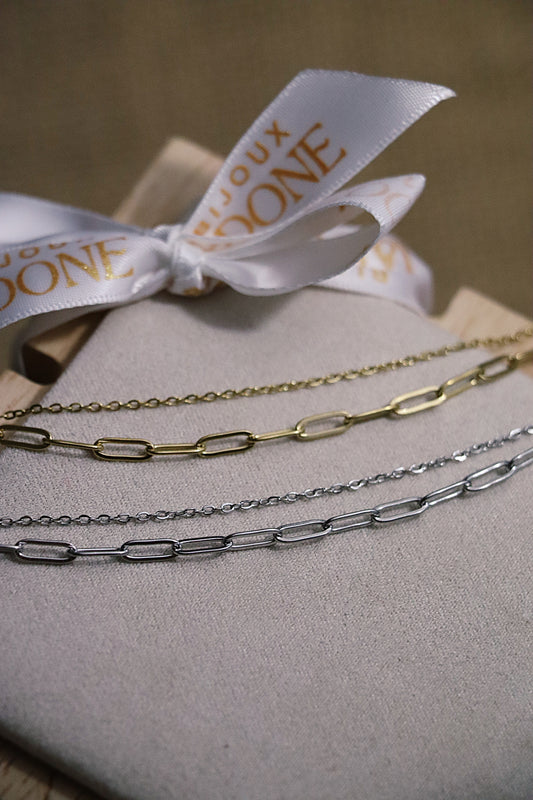 ALIA l Bracelet doré ou argenté double chaîne en acier inoxydable