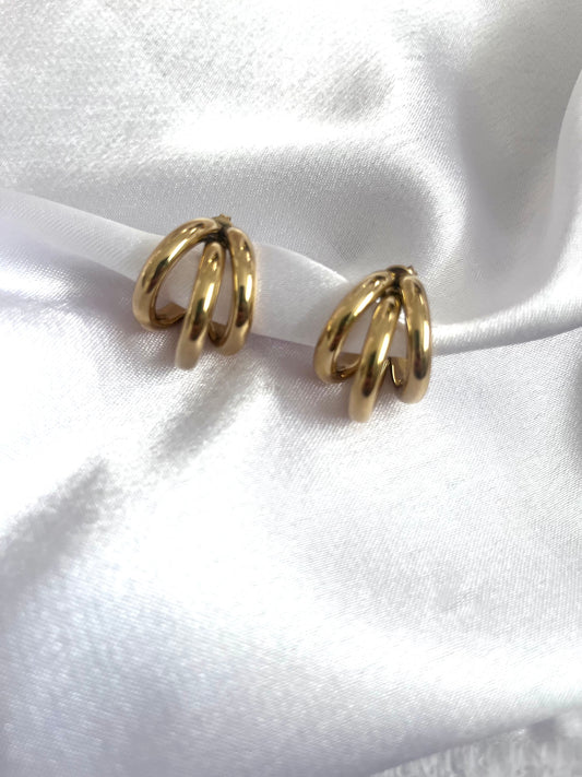 HINA l Boucles d'oreilles créoles doré à 3 anneaux soudés en acier inoxydable
