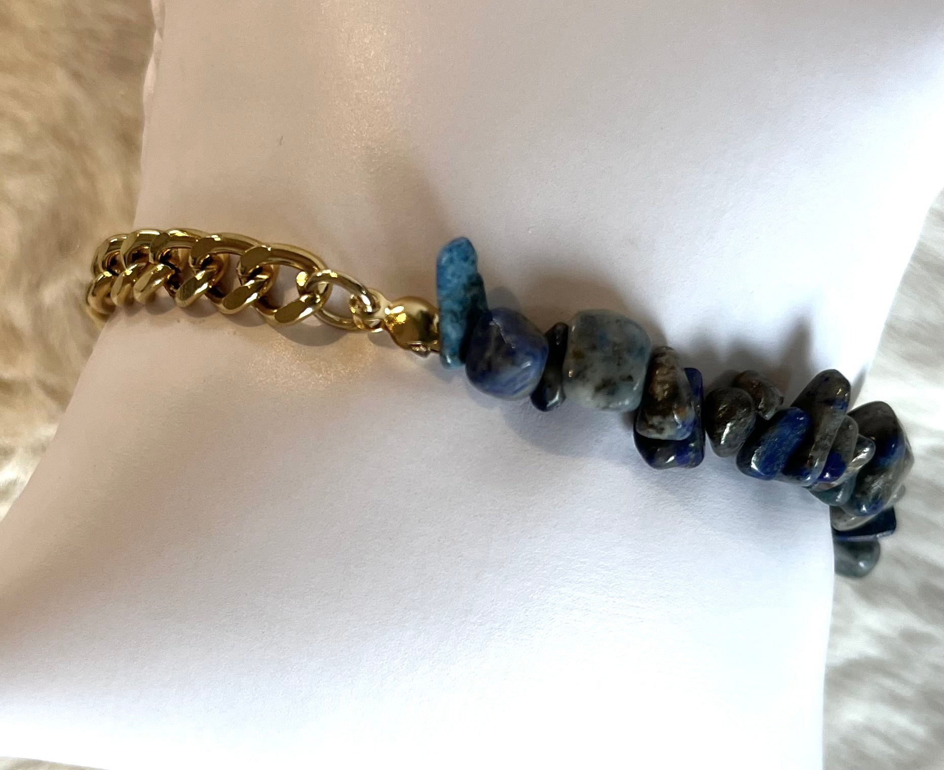 Découvrez le bracelet Blima doré en acier inoxydable 304 plaqué à l'or fin 18k et ses pierres Semi-précieuses de Sodalite Bleu .💫