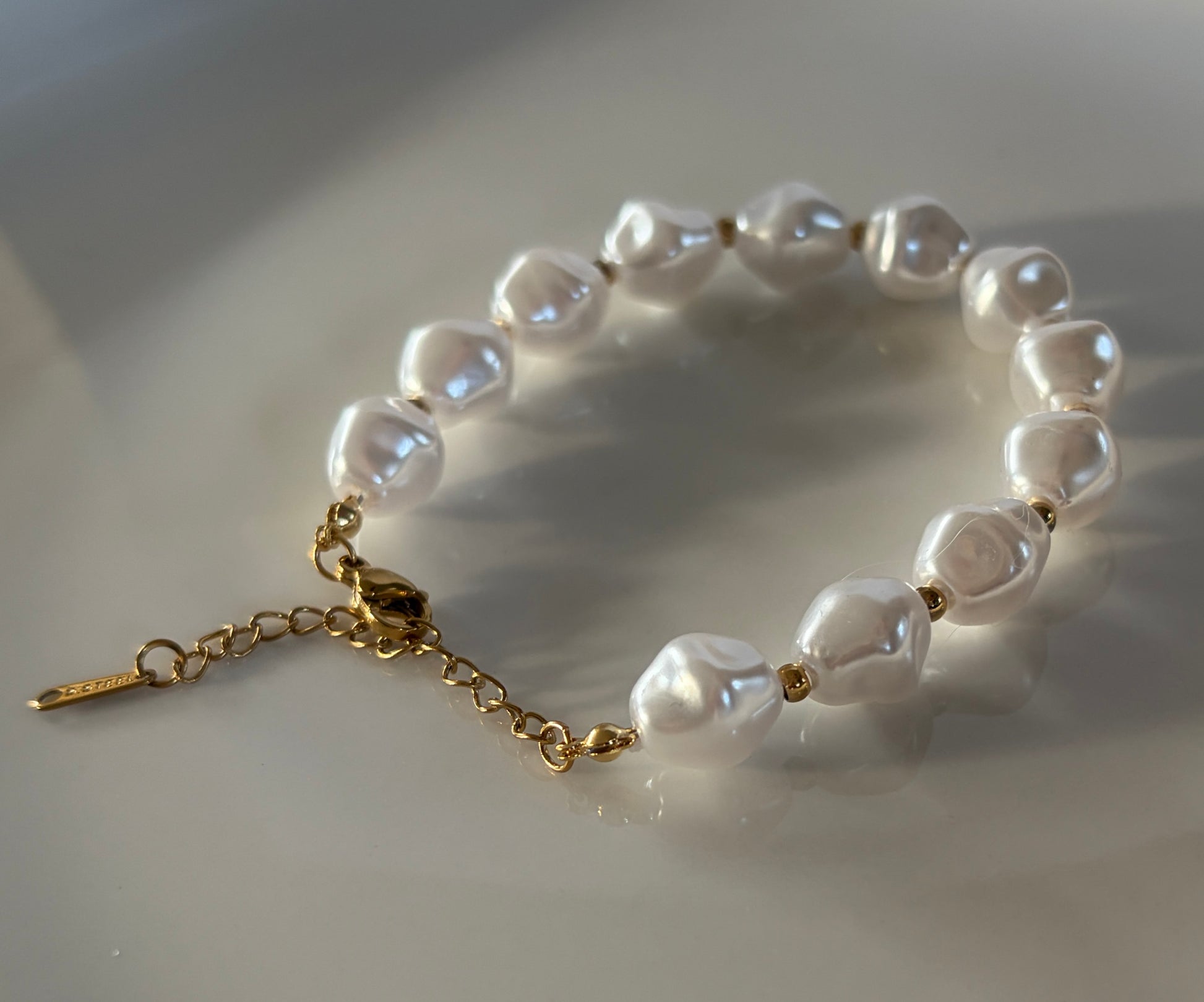Sublime et élégant bracelet d'imitation de perles blanche et doré en acier inoxydable 304