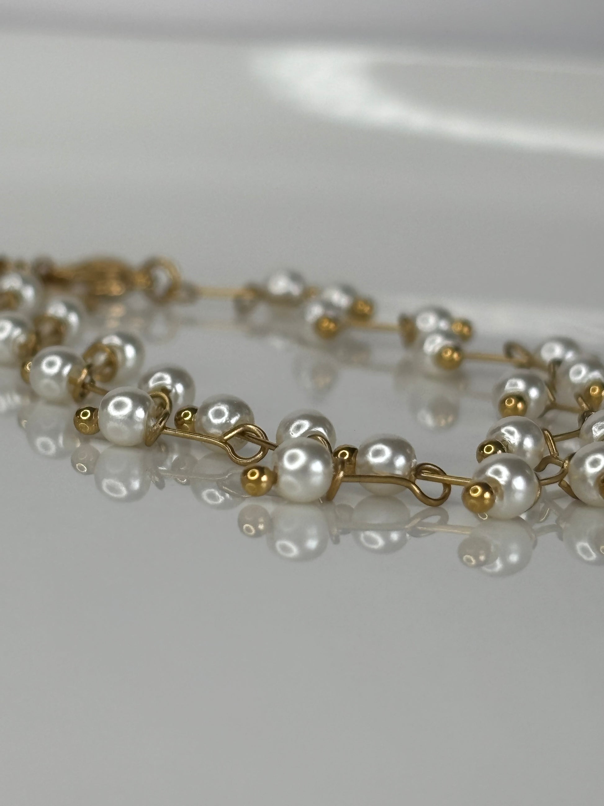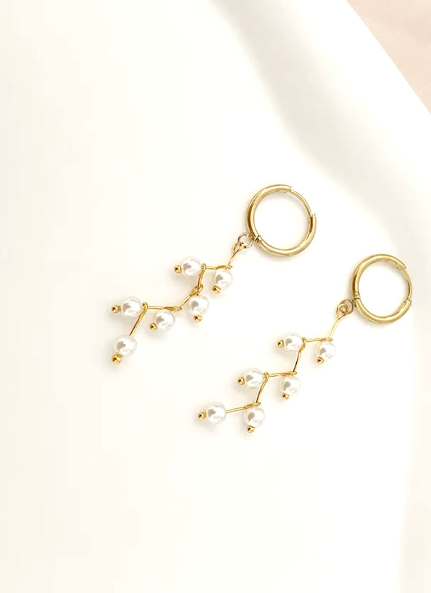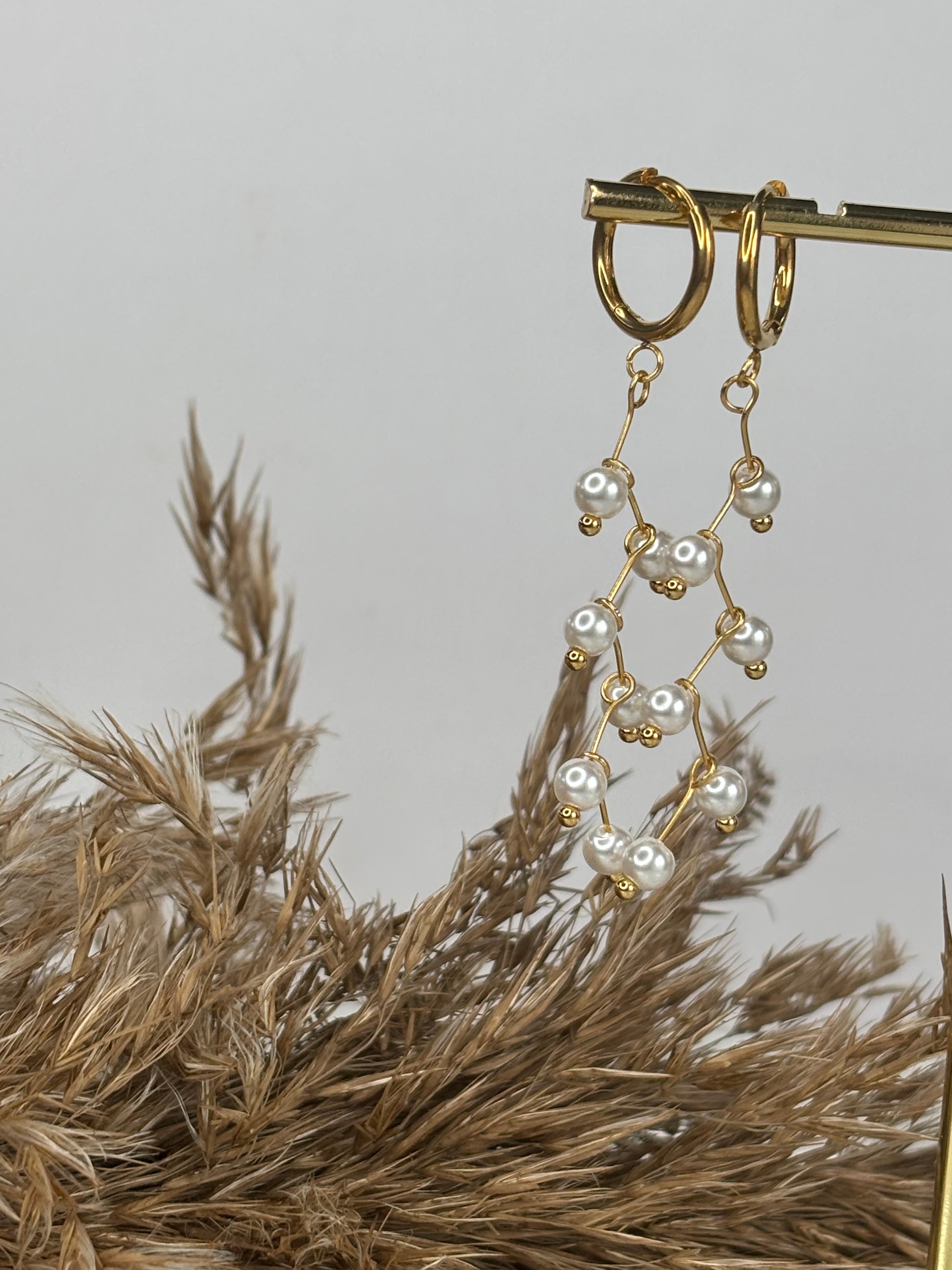 optez pour la parure complète, collier bracelet et boucles d'oreilles dorés et ses perles blanches tombantes en acier inoxydable 304 plaqué à l´or fin 18k ou choisissez simplement l'élément que vous souhaitez dans les options de cette annonce