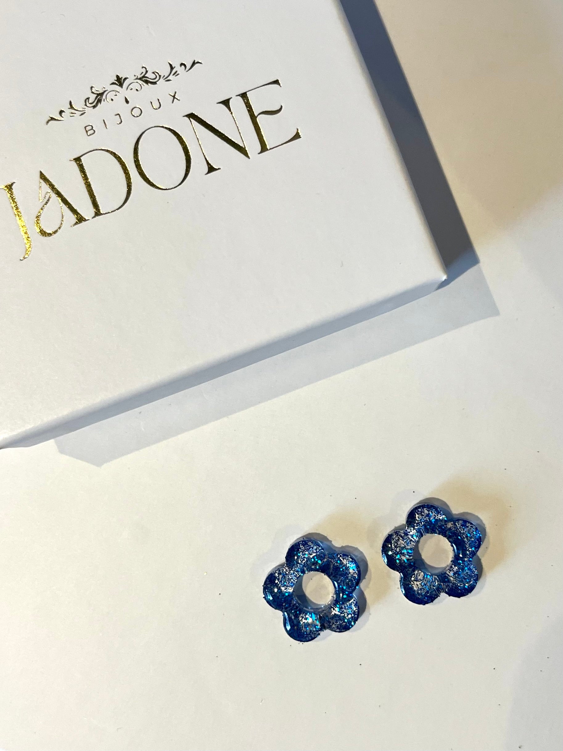 Pampilles l fleur pailettes bleu avec ou sans créole